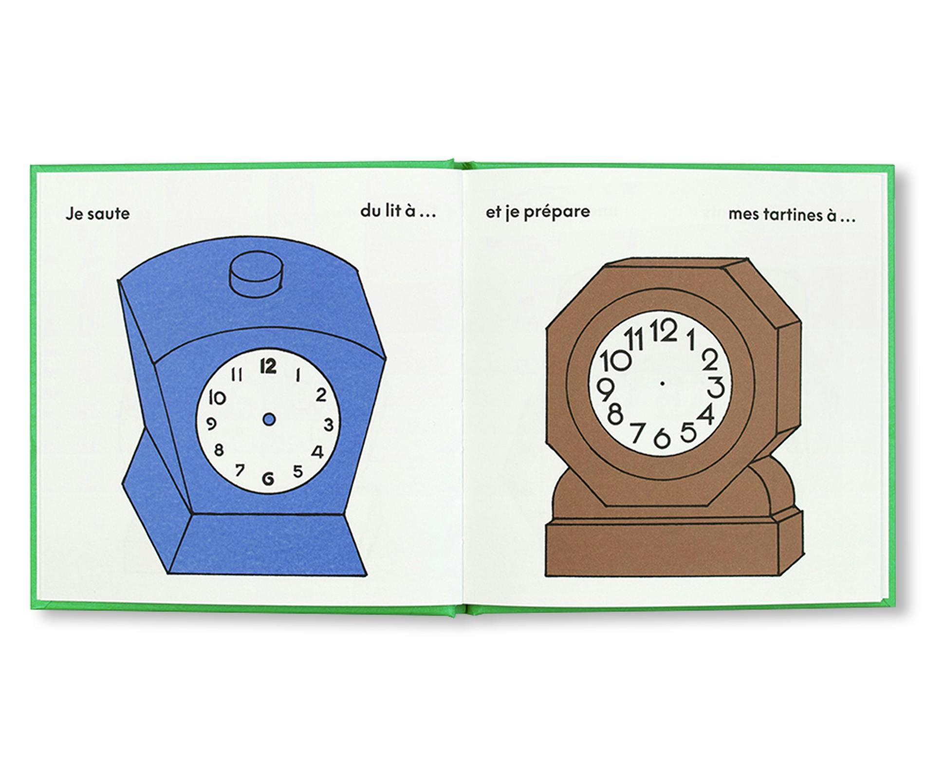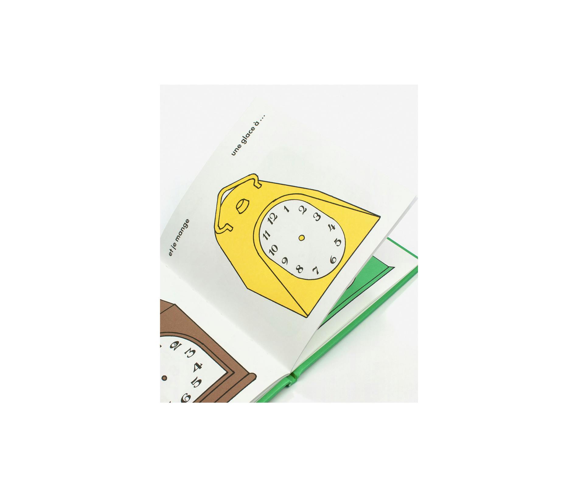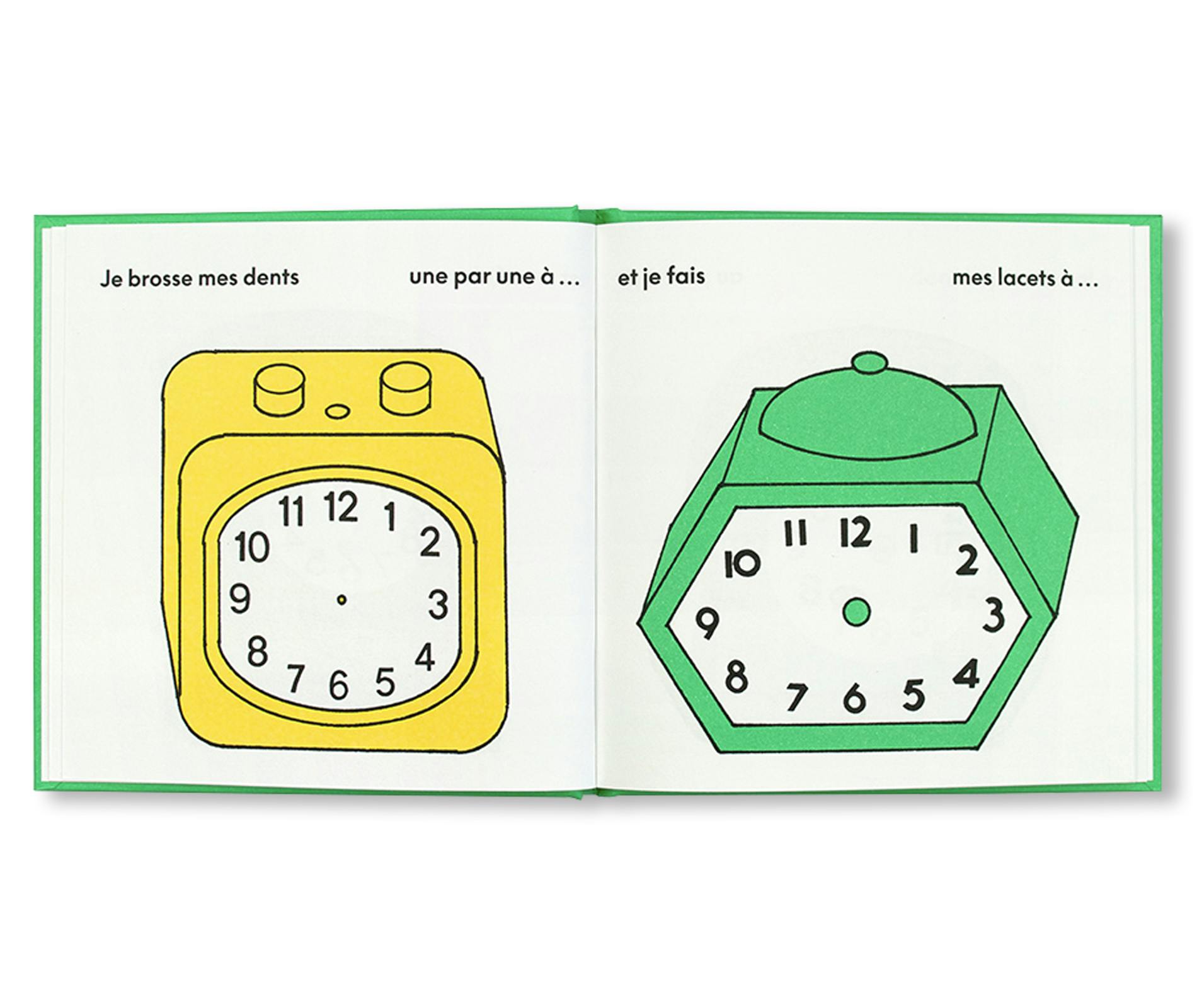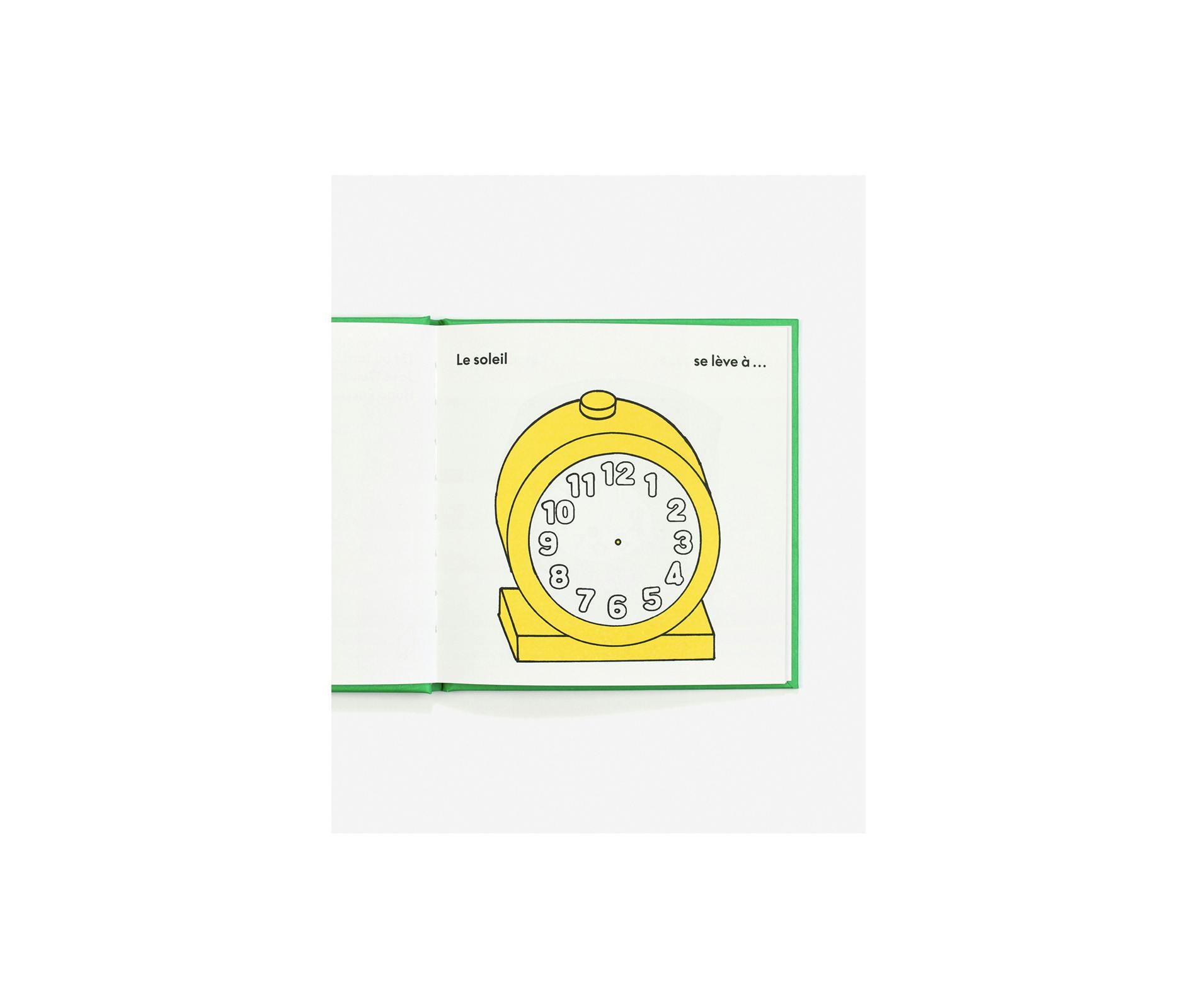 本書は「Éditions du Livre」の〈Album〉コレクション第一作として刊行された。対象年齢は0〜5歳。朝日がのぼるときから、おやすみ前の読み聞かせまで、一日のすべての瞬間は生き生きとしている。本書は一日の流れをたどりながら、ちいさな読者が自分で時計の針を描き込むことで、時刻の読み方を学べるつくりになっている。