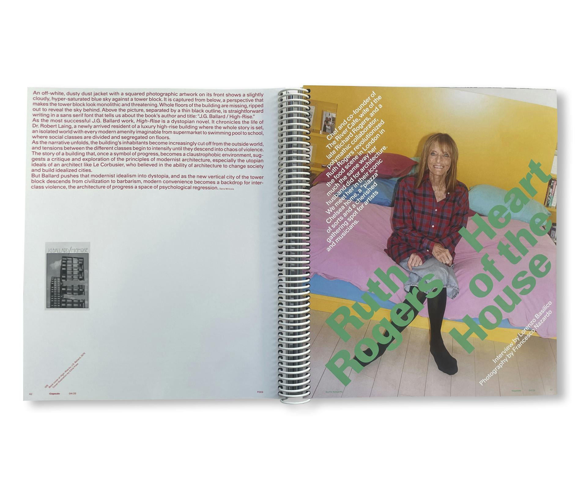 イタリアを拠点とし、出版社でありクリエイティブ・プラットフォームとして活動する「カプセル(CAPSULE)」が年に一度、ミラノ・デザインウィークに合わせて刊行する、雑誌と書籍の中間に位置付けられるシリーズの第4号。イタリアのラディカルなデザイン出版物の系譜に敬意を払い、造本や紙質など贅沢な物質感を持つ一冊として展開され、デザインを広義的に捉え、ジャンルを横断するデザイナー/建築家/クリエイターの特集を通してそのヴィジョンを掘り下げる。