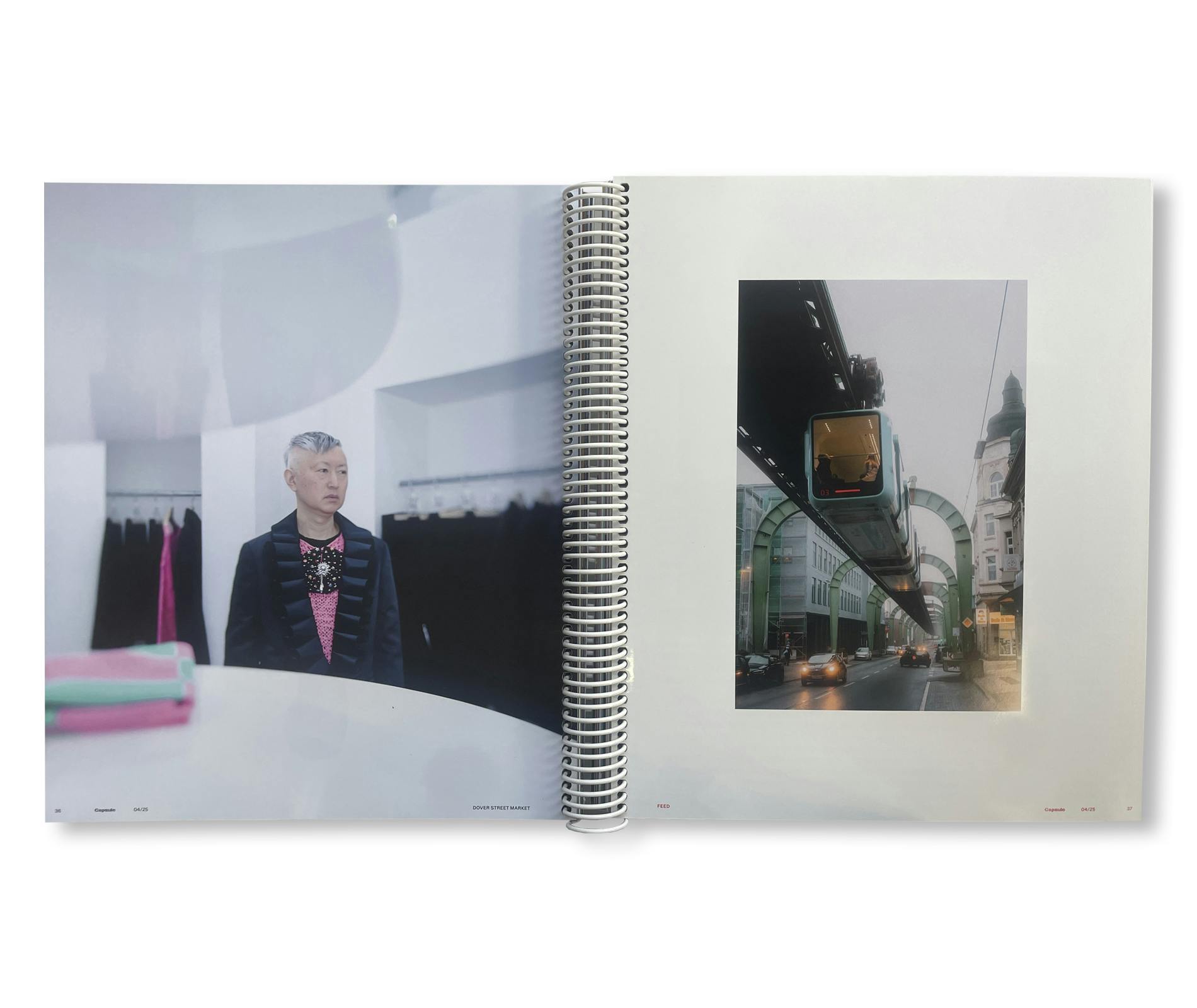 表紙は、ベルリン拠点の建築デザインスタジオ「sub」の共同創設者でありクリエイティブディレクター、ニクラス・ビルドスタイン・ザー(Niklas Bildstein Zaar)を起用、白色のリングで製本されている。