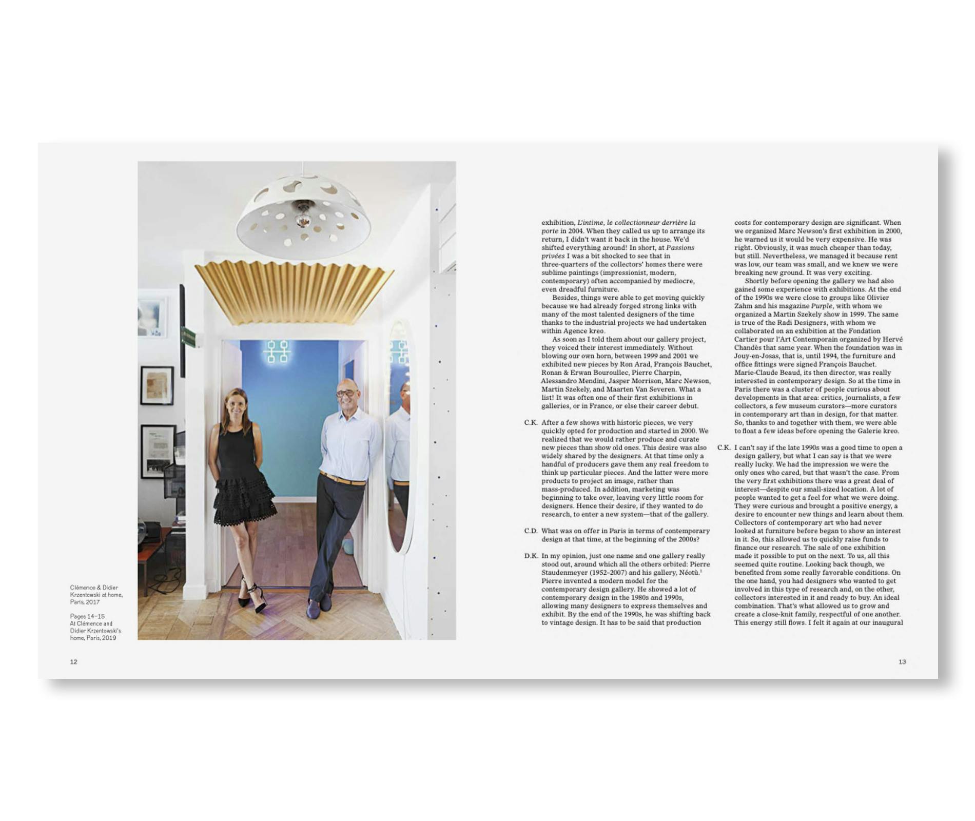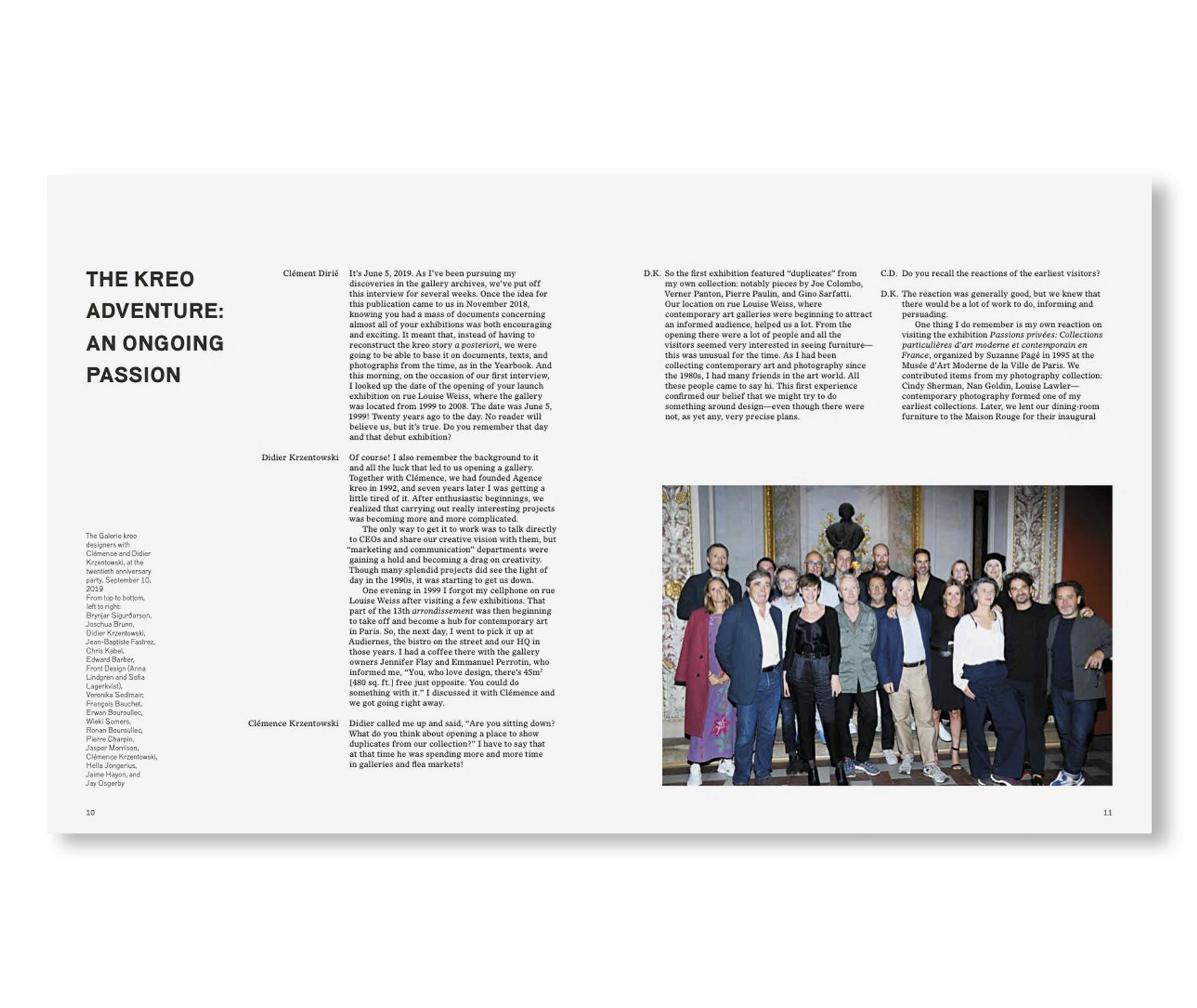 創設者へのインタビュー、展覧会アーカイブのビジュアルレビュー、そして哲学者クリスチャン・シュラッター(Christian Schlatter)、デザイン研究者マルコ・ロマネッリ(Marco Romanelli)とヨハンナ・アガーマン・ロス(Johanna Agerman Ross)、アーティストのベルトラン・ラヴィエ(Bertrand Lavier)といった、ギャラリー・クレオの主要な協力者たちによる寄稿を通じて、形と技法の新たな解を生み出すデザイン・ラボラトリーの物語を編む。