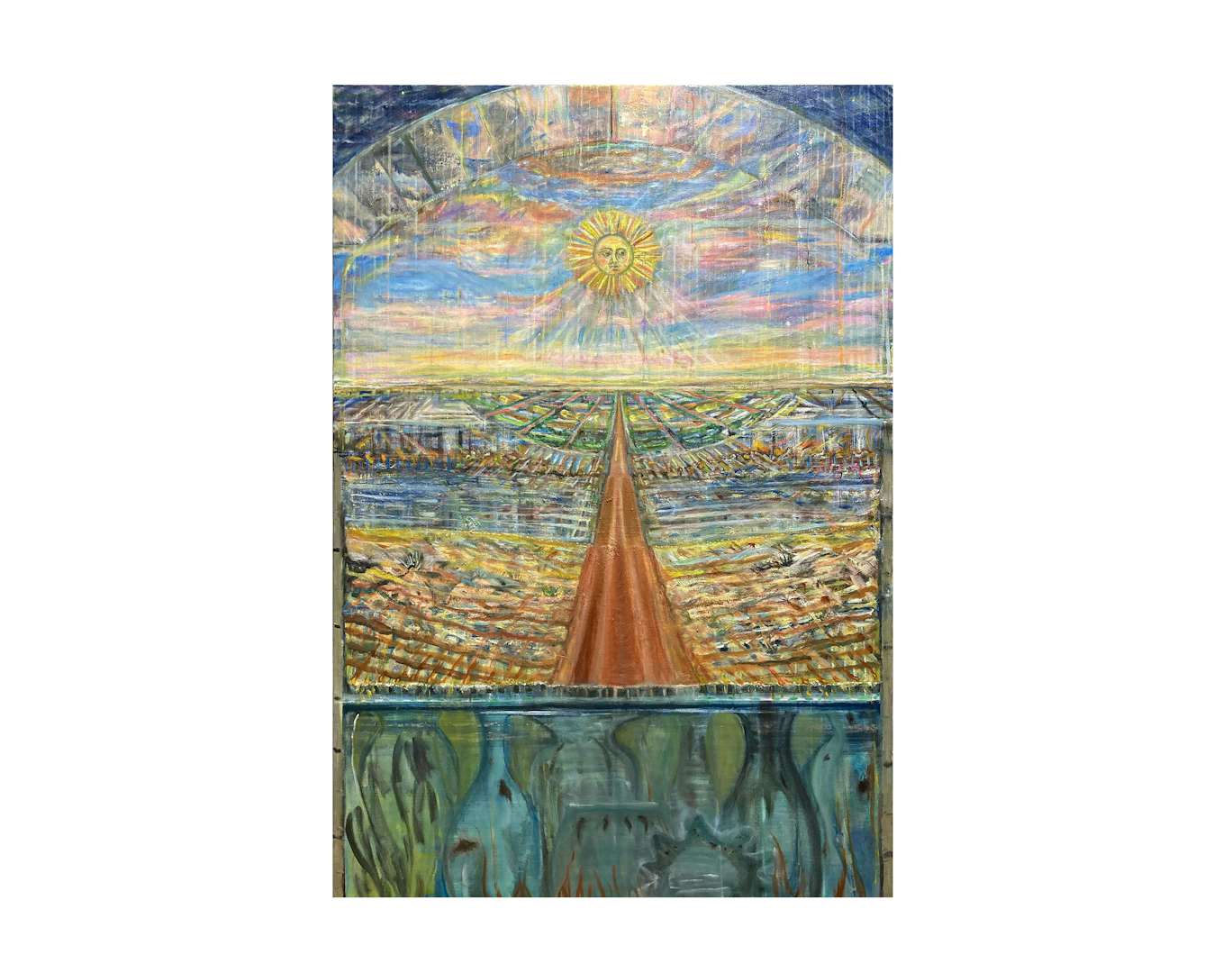 いっぽうで彼女は、「たとえ骨董市に置かれたとしても、なんだか良いと思わせる絵の持つ強度が理想」と話します。そこでは国籍や性別、社会的属性は問われず、ただ絵の本質が問われている気がするからです。世界中に太陽崇拝の神話が存在するほど人類にとって重要な存在である太陽。人種や生まれた国を問わず、人々は太古から自然のなかに大きな力を感じ、その目に見えない存在を「神」として信仰の対象としてきました。彼女にとって、美術も、ときに太陽のように大きな力を持ち、また信じられるものとして自身を照らしてくれるもの。「フォークロア」を目指した魂の作品群を感じてください。