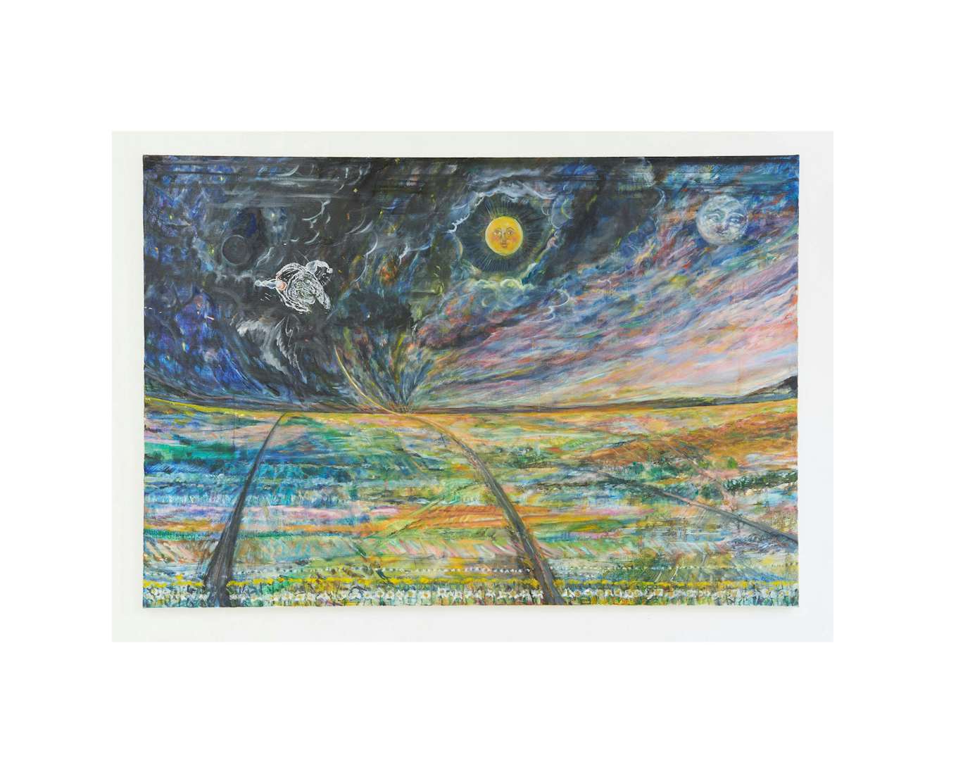 EKKOのシグネチャーである、「顔をもつ太陽」をモチーフとした風景画は、「まる(=太陽)、横棒(=地平)、さんかく(=道)」というシンプルな構図で構成されています。かつて江戸時代の禅僧であり画家の仙厓(1750~1837)により図形のみで描かれた《〇△□》(まるさんかくしかく)では、この世の存在すべてを3つの図形に代表させ、宇宙を画面のなかで表現したと言われています。「○」が象徴する満月のように悟りの境地にいたる修行の過程を図示したという説もあります。彼女の作品における太陽は、修行や儀式のような自身の表現行為の追求を表しているのかもしれません。また、陽が沈み、上るという「再生」や「生命の循環」を表しているのかもしれません。