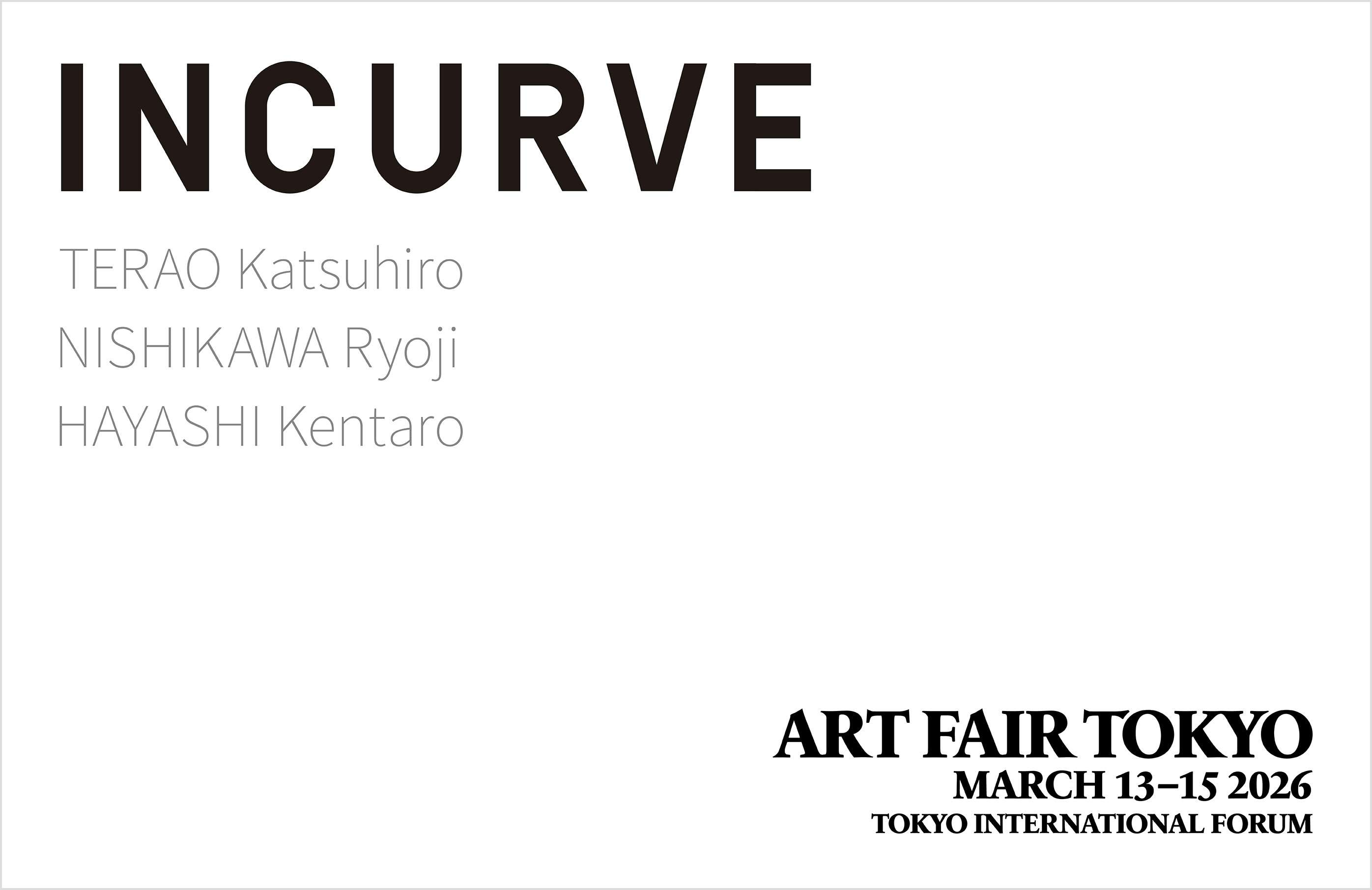 3月13日より、東京国際フォーラムでは、「アートフェア東京」の20回目となる「ART FAIR TOKYO 20」が開催(会期は3月15日まで)。本フェアでINCURVE(インカーブ)は、寺尾勝広、西川遼志、林健太郎の作品を出品。会期にあわせ、オンラインでも出品作を販売いたします。