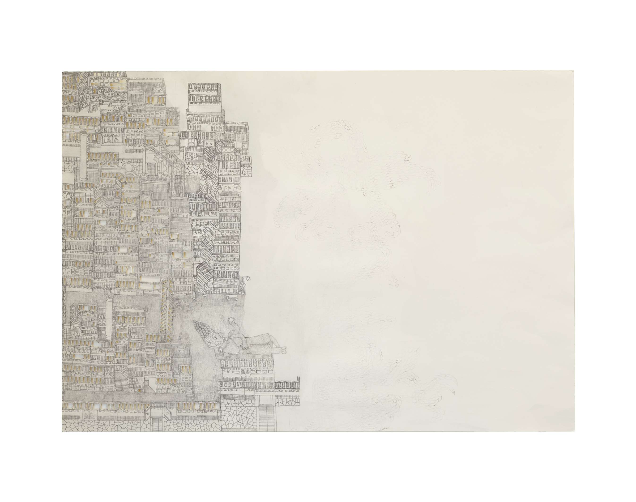 1986年生まれ。下描きをせず、カッターナイフを用いて画用紙を切り抜く技法を用いる。想像や記憶から、余白を背景に架空の生き物や建造、町を描く。作品は、静寂のなかに息づくような気配が漂い、観る者の想像をかき立てるだろう。アートフェア東京への出品を重ねている。