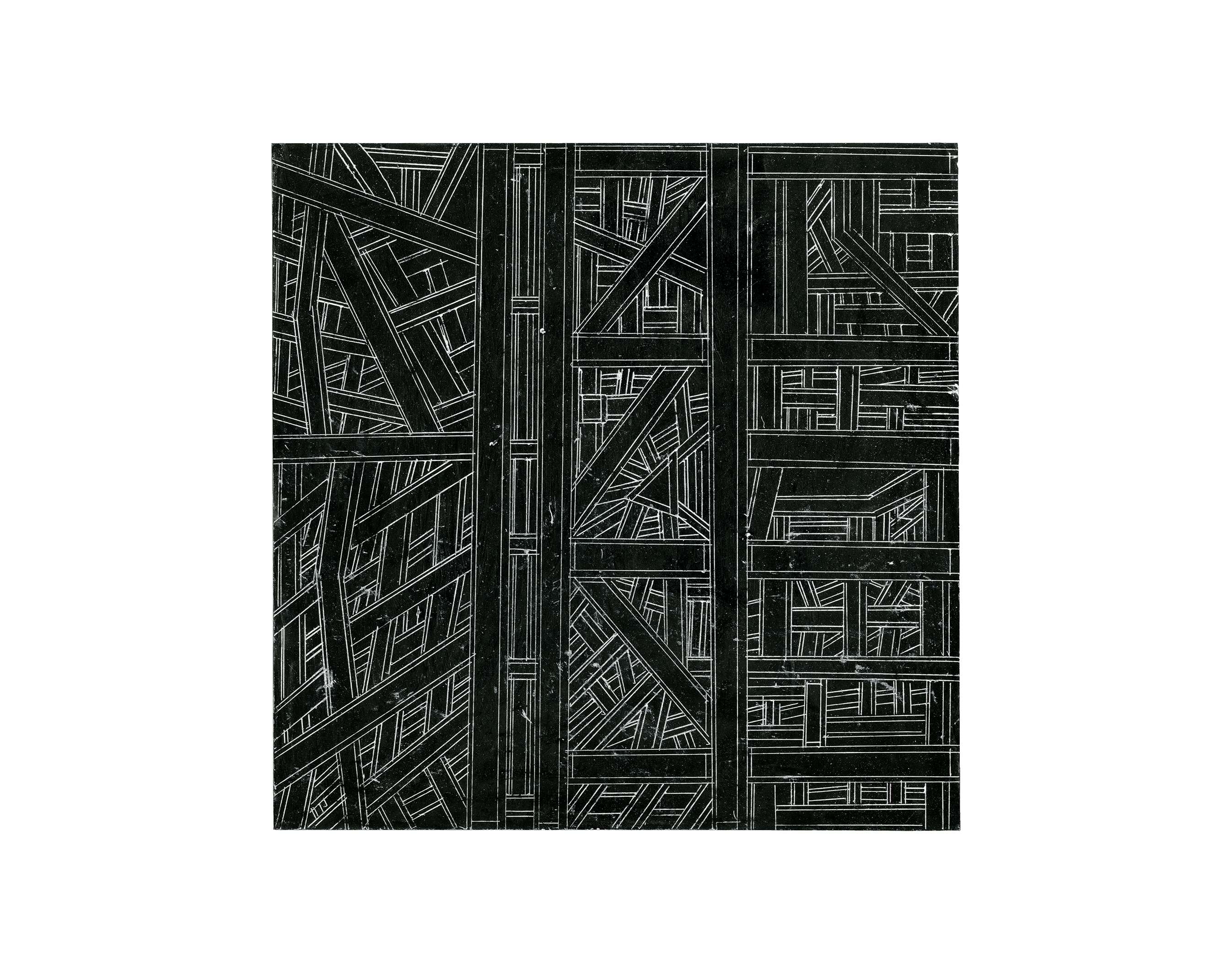 1960年生まれ。父親が経営する鉄工所で溶接工として20年間働いた後、鉄をモチーフに制作を開始。本人が「図面」と呼ぶ緻密なドローイングには、鉄骨の柱をあらわす直線と溶接の目印をあらわす記号がひしめく。迷いなく手を動かすその姿からは、鉄骨への強い想いと、溶接工として過ごした時間の蓄積を感じさせる。ニューヨークで初発表後に日本の現代美術館でも注目を浴び、以来、パリのポンピドゥー・センターやシンガポールのアートフェアなど、国内外での展示を開催している。