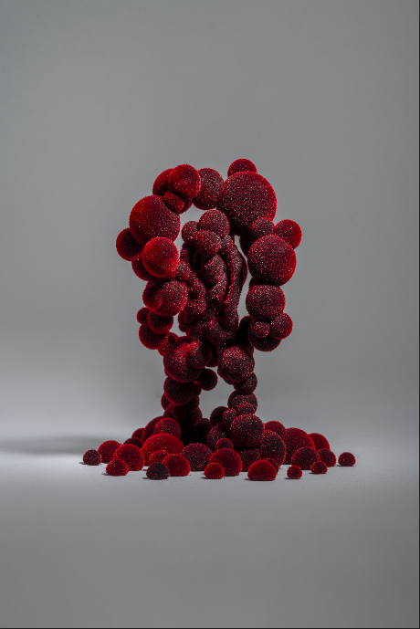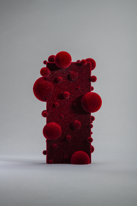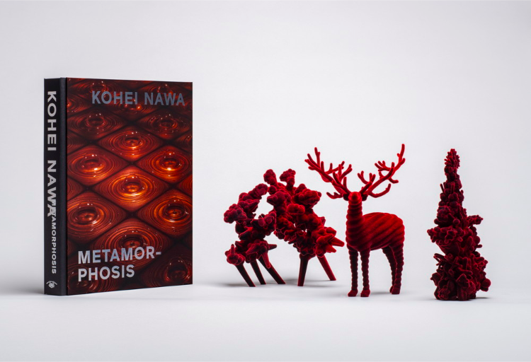 名和の活動が、豊富な写真資料や評論とともに収録されたアートブック『METAMORPHOSIS』の限定コレクターズエディション。3Dプリンタによって過去の名和作品のフォルムを出力し、表面にヴェルベットのような絨毛を付着させたマルチプルが付属。各種1体ずつを用意した。