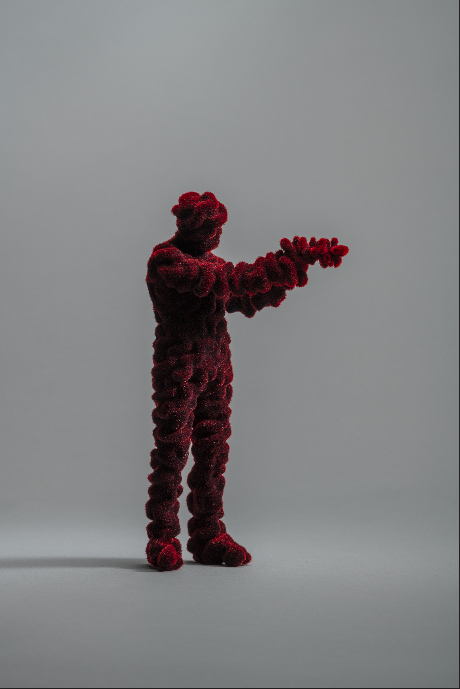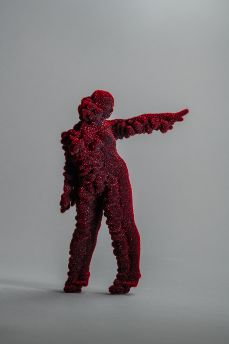 2011年の個展「SYNTHESIS」で展示された《Throne》をベースにした作品。名和が過去にも創作で使用してきた炭化ケイ素の粒子で覆われており、玉座には銀色の子供が座る。