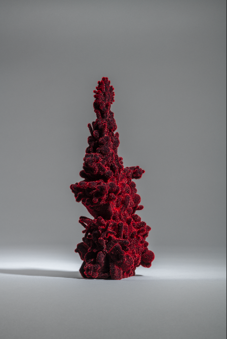 10メートルを超える大きさのルーヴル美術館で展示された《Throne》と同型の、最新の3D技術を使用したエディション作品。パリに同行し展示前に作業を行った職人・清水ひろみの手で金箔が貼られた。