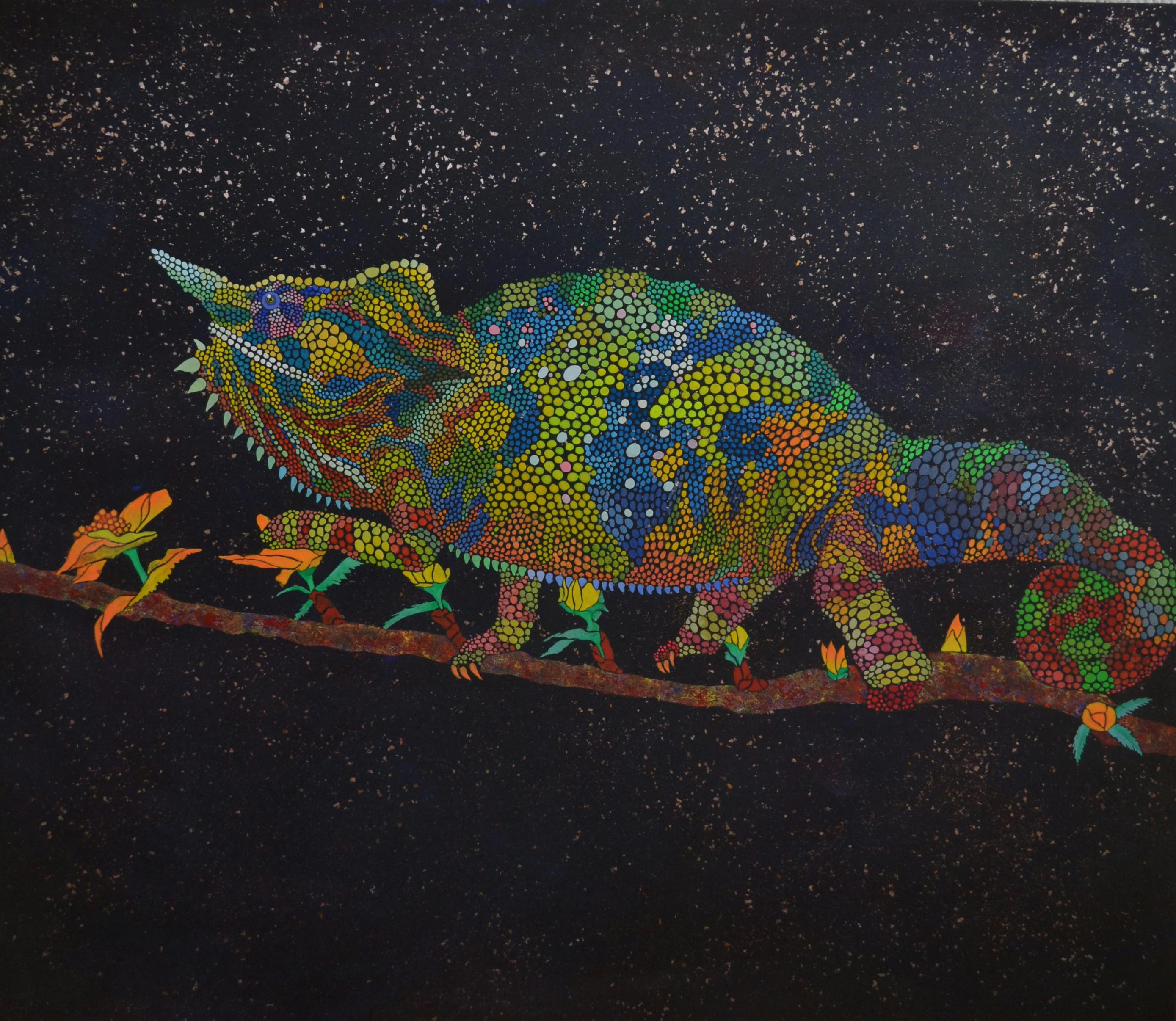 | 素材 | 高知麻紙、岩絵具、 アクリル、虹彩箔 |